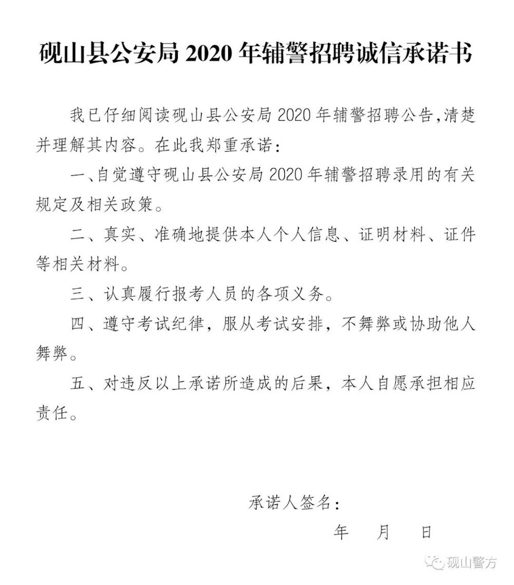 4.硯山縣公安局2020年輔警招聘誠信承諾書
