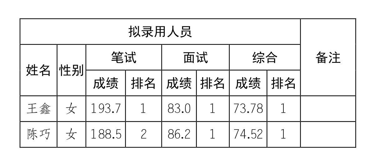 2019年云南農業(yè)職業(yè)技術學院公開招聘工作人員中,王鑫和陳巧2名考生因孕期結束后按照要求進行了體檢。根據筆試、面試、考察及體檢結果,按照有關規(guī)定,經研究,同意王鑫和陳巧2人為擬錄用人員,并公示如下: