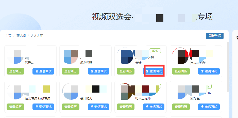 登錄企業(yè)后臺進入視頻雙選會—西南林業(yè)大學2020年畢業(yè)生網絡視頻雙選會,點擊“進入大廳”,篩選簡歷。