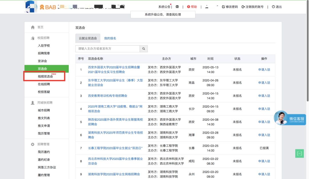 “2020屆畢業(yè)生網絡視頻雙選會活動”