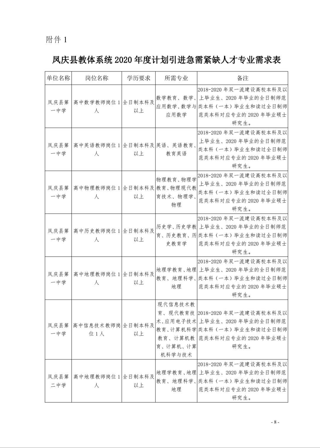 1.鳳慶縣教體系統(tǒng) 2020 年度計(jì)劃引進(jìn)急需緊缺人才專業(yè)需求表