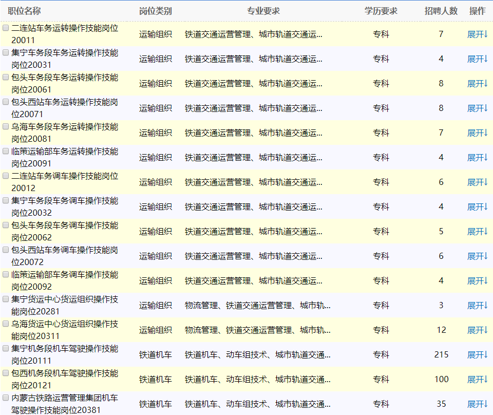 本次招聘崗位全部為中國(guó)鐵路呼和浩特局集團(tuán)有限公司所屬單位生產(chǎn)一線操作技能崗位,具體招聘崗位信息見附表。