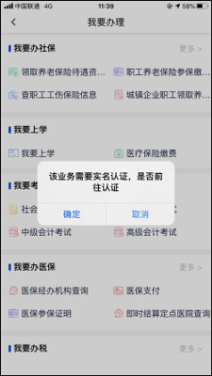 選擇任意辦理事項(xiàng)時(shí),APP會(huì)自動(dòng)提示進(jìn)行實(shí)名認(rèn)證,用戶自主選擇認(rèn)證方式,建議采用身份證審核方式。