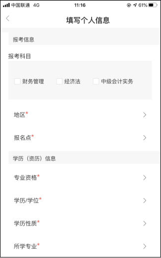 2.選擇科目后,如實(shí)填寫相關(guān)個(gè)人信息