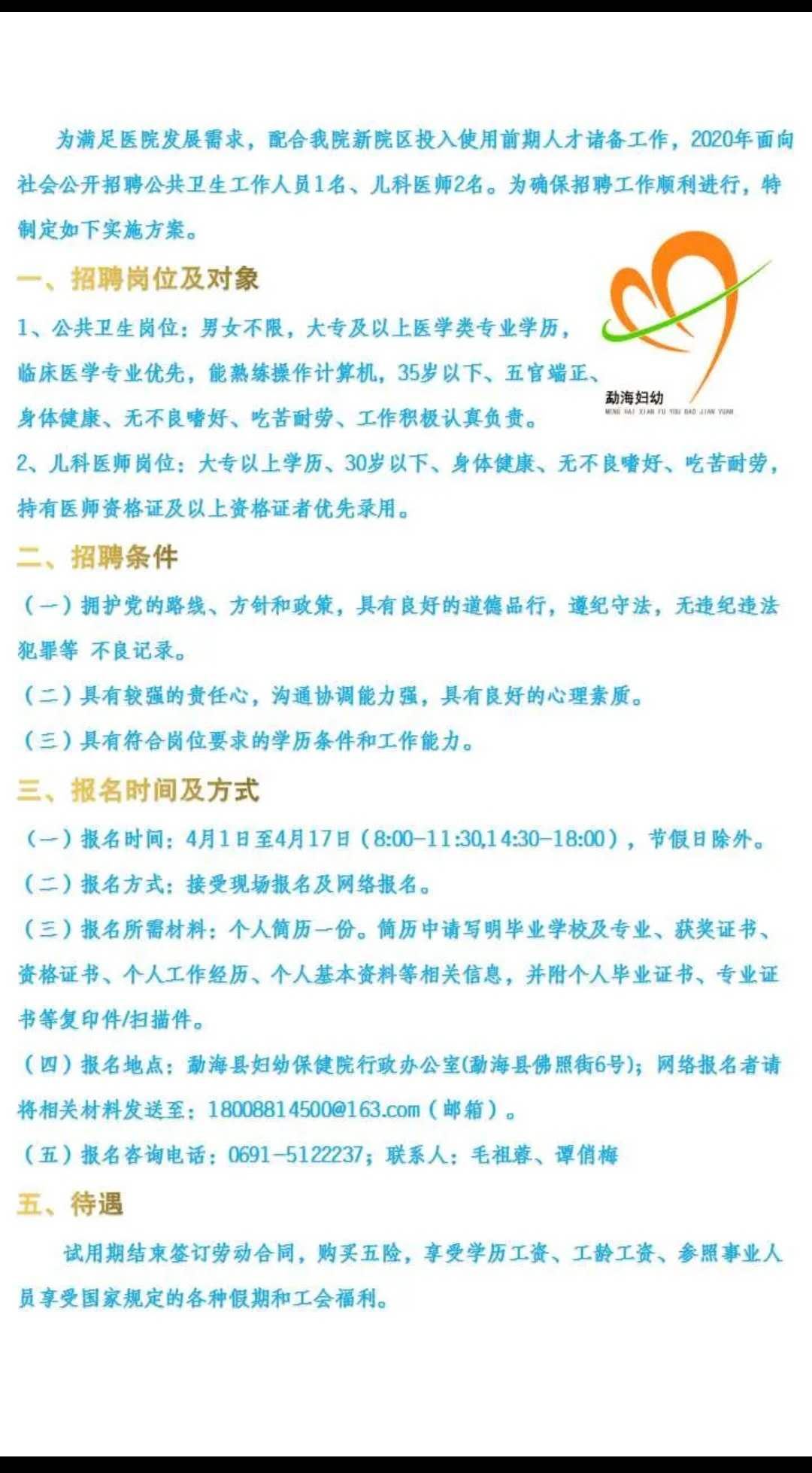 2020年西雙版納州勐海縣婦幼保健院招聘簡(jiǎn)章