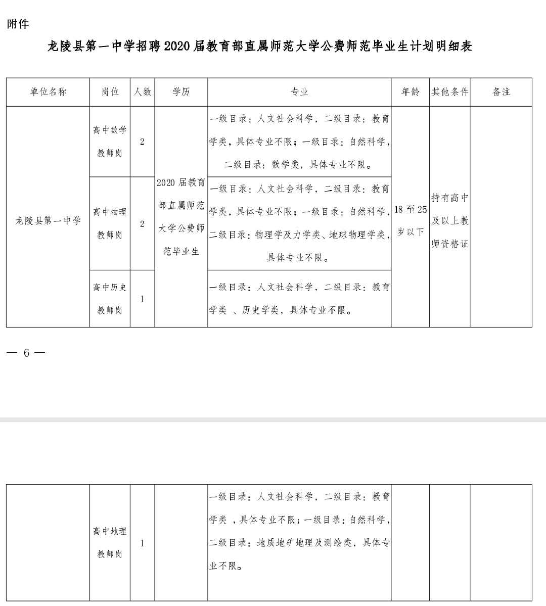 龍陵縣第一中學招聘2020屆教育部直屬師范大學公費師范畢業(yè)生的公告