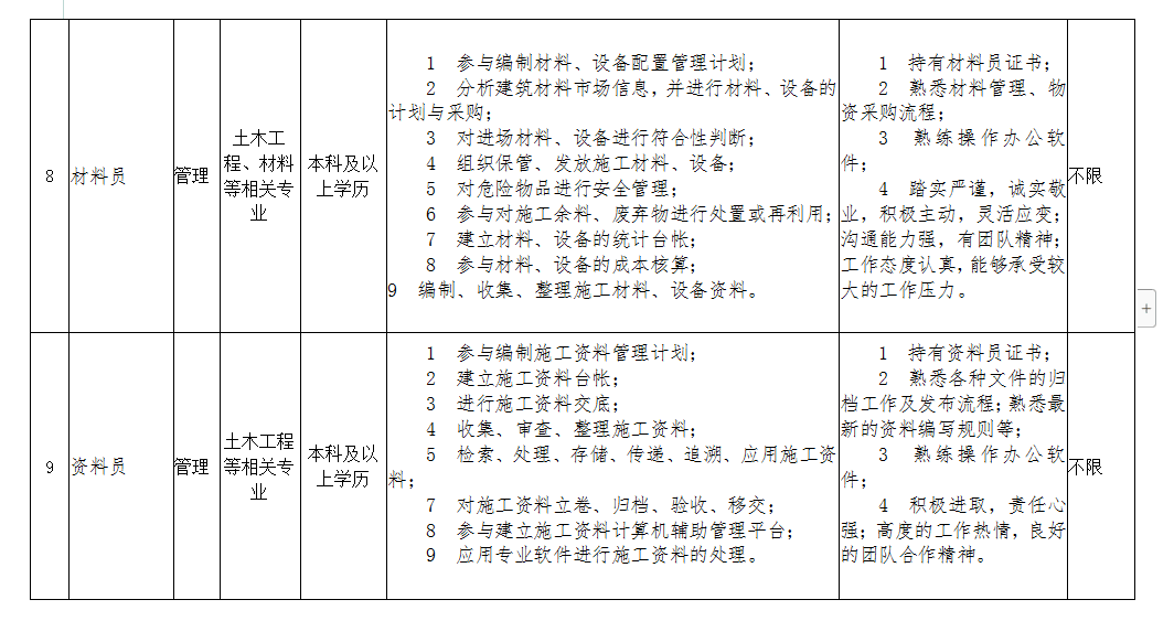 與原單位簽訂正式合同,最高學(xué)歷大專及以上,有一定的項(xiàng)目管理經(jīng)驗(yàn),持有建造師證書或者中級以上職稱證優(yōu)先考慮。