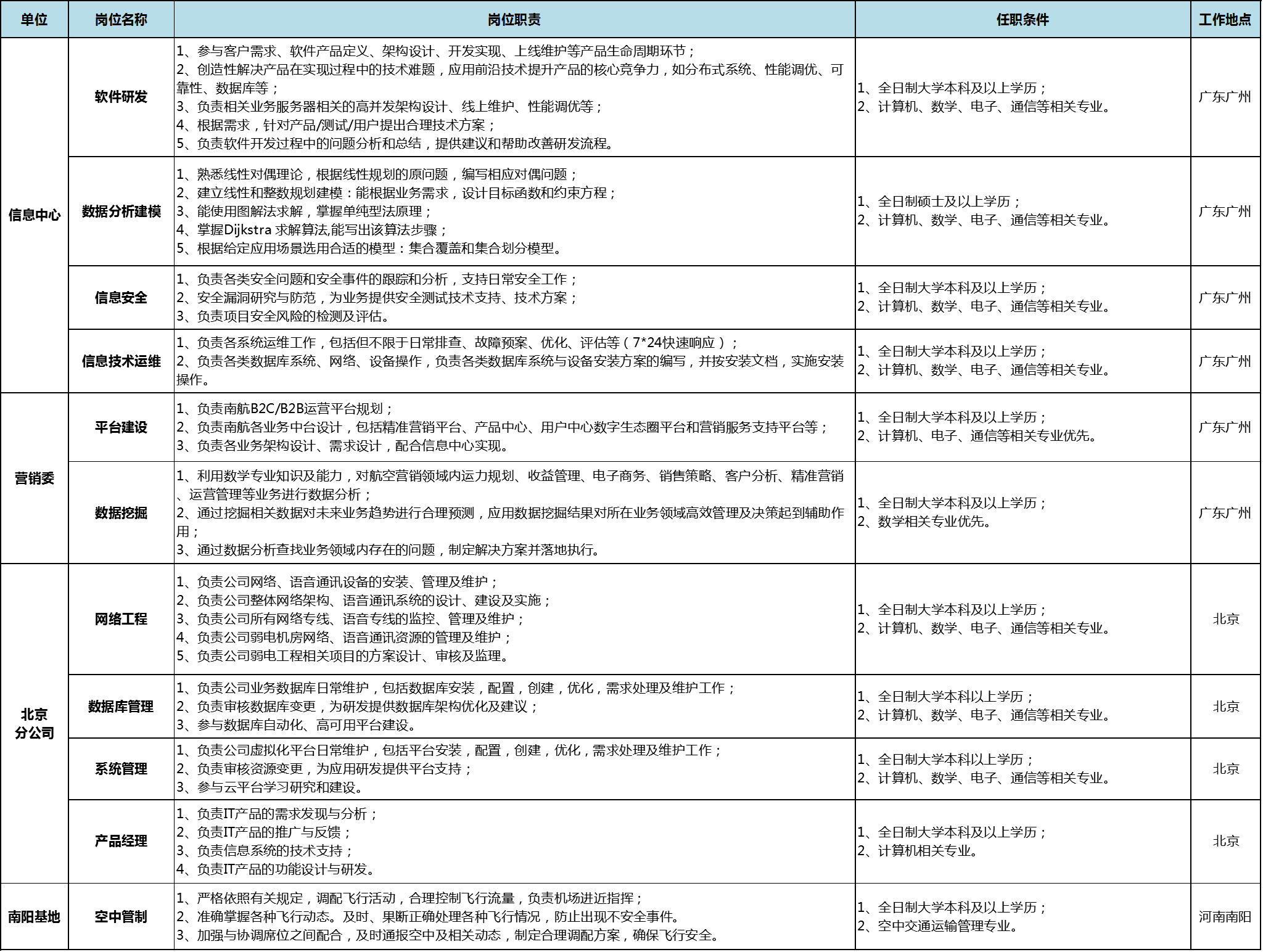 職位申請(qǐng)網(wǎng)址:https://job.csair.com/showactive?id=1001J1100000002UI2WX