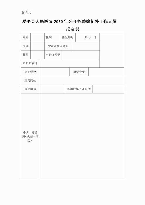 附件2:羅平縣人民醫(yī)院2020年公開招聘編制外工作人員報(bào)名表
