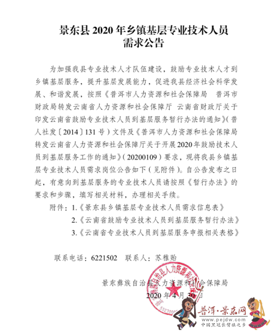 景東縣2020年鄉(xiāng)鎮(zhèn)基層專(zhuān)業(yè)技術(shù)人員需求公告