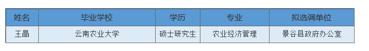 云南省面向選定高校招錄2020年定向選調(diào)生擬選調(diào)人員