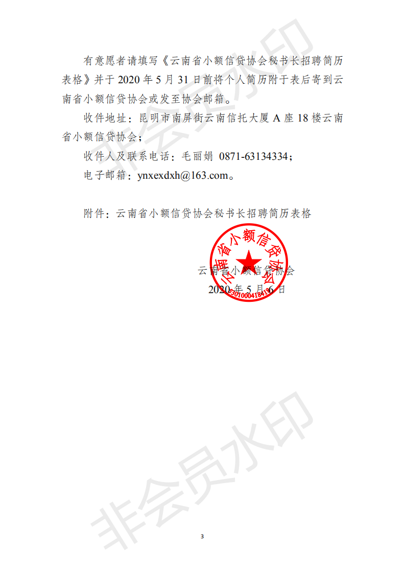 2020年云南省小額信貸協(xié)會(huì)秘書(shū)長(zhǎng)招聘公告