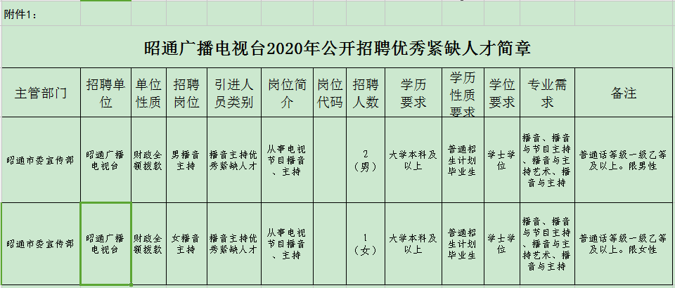 1.昭通廣播電視臺2020年公開招聘優(yōu)秀緊缺人才簡章