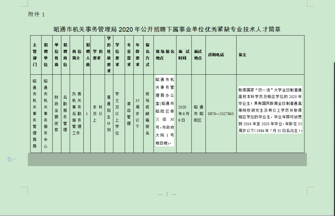 附件:1. 昭通市機關(guān)事務(wù)管理局2020年公開招聘下屬事業(yè)單位優(yōu)秀緊缺專業(yè)技術(shù)人才簡章;