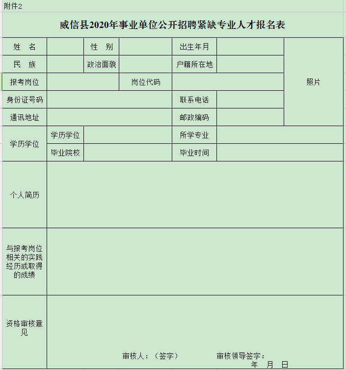 2.威信縣2020年事業(yè)單位公開招聘緊缺專業(yè)人才報(bào)名表