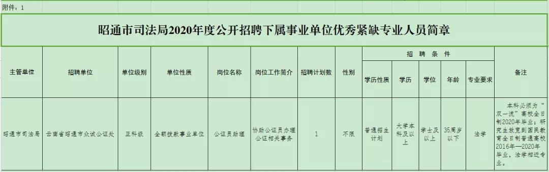 附件:1.昭通市司法局2020年公開招聘下屬事業(yè)單位優(yōu)秀緊缺專業(yè)人員簡章(附件1)