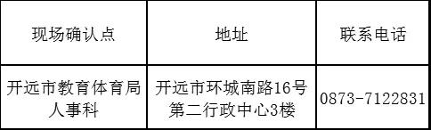 (2)現(xiàn)場確認(rèn)地點:開遠(yuǎn)市教育體育局人事科(開遠(yuǎn)市環(huán)城南路16號第二行政中心三樓)。