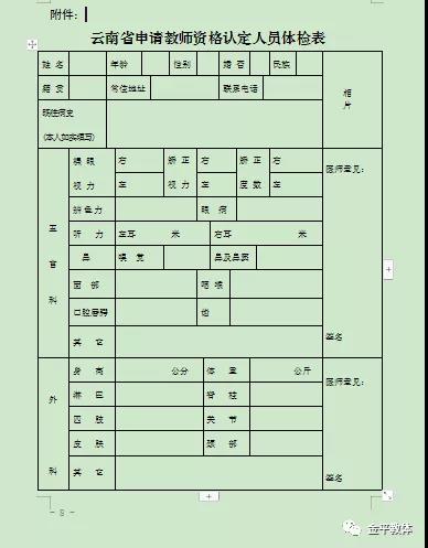 附件:云南省申請教師資格認(rèn)定人員體檢表