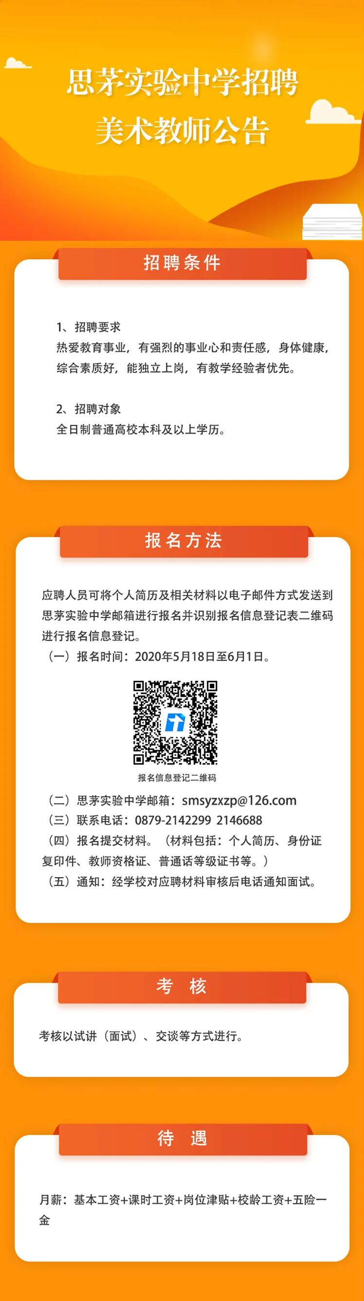 普洱市思茅實驗中學2020年招聘美術教師公告