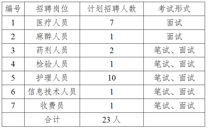 醫(yī)院決定增加藥劑崗位、檢驗(yàn)崗位、信息技術(shù)崗位、收費(fèi)崗位筆試環(huán)節(jié),其他崗位考試形式不變,具體考試形式如下表。