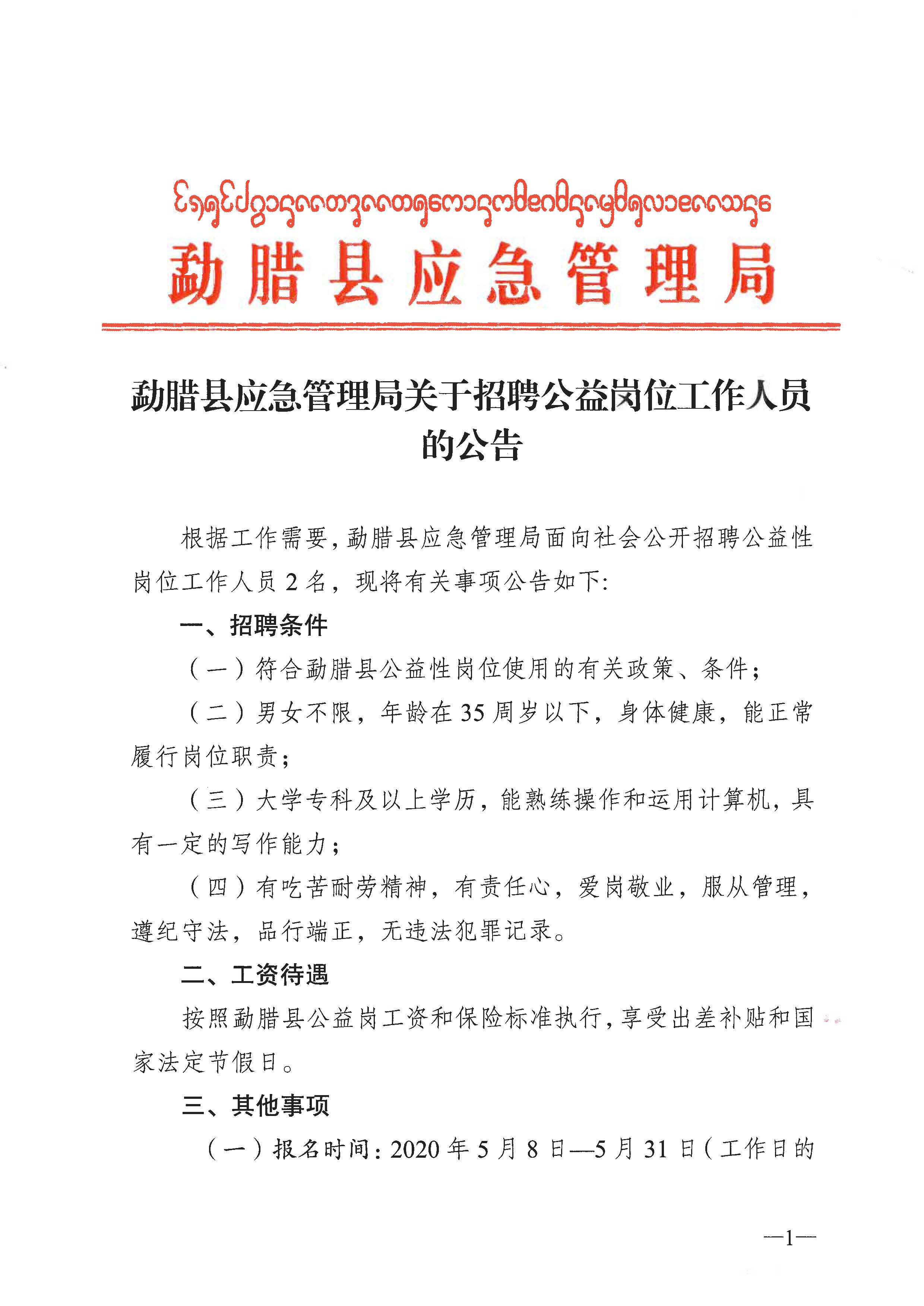 勐臘縣應(yīng)急管理局招聘公益性崗位工作人員的公告.pdf