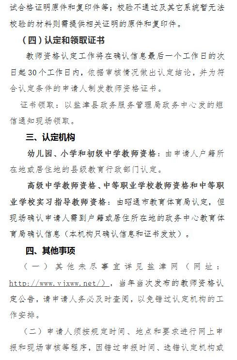 昭通市鹽津縣2020年春季教師資格認定公告