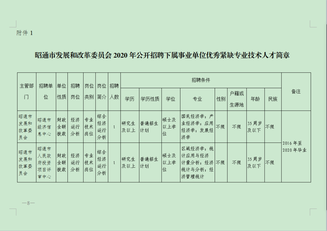 1. 昭通市發(fā)展和改革委員會(huì)2020年公開招聘下屬事業(yè)單位優(yōu)秀緊缺專業(yè)技術(shù)人才簡章