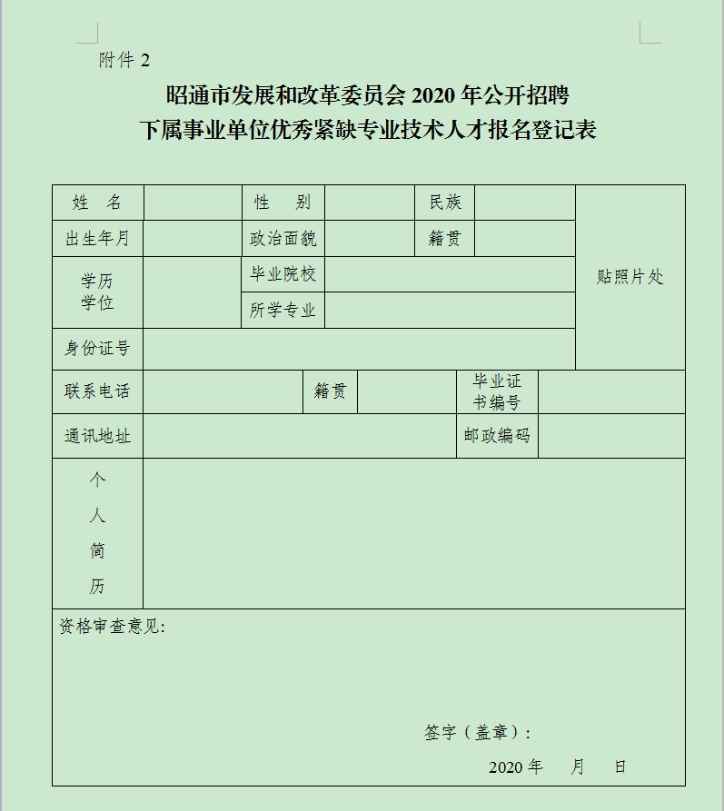 2. 昭通市發(fā)展和改革委員會(huì)2020年公開招聘下屬事業(yè)單位優(yōu)秀緊缺專業(yè)技術(shù)人才報(bào)名登記表