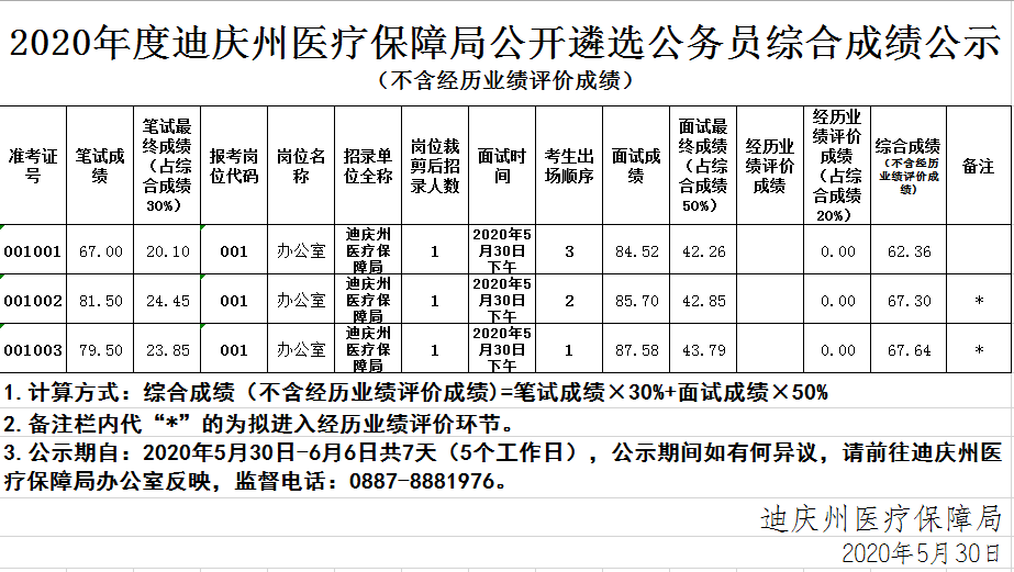 2020年度迪慶州醫(yī)療保障局公開遴選公務(wù)員綜合成績(jī)公示