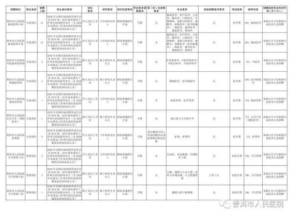 附件:2020年普洱市人民醫(yī)院面向全國開展專項(xiàng)招聘優(yōu)秀高校畢業(yè)生招聘崗位計(jì)劃表