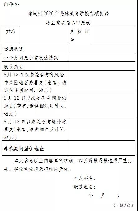 2.迪慶州2020年基礎(chǔ)教育學(xué)校專項(xiàng)招聘考生健康信息申報(bào)表
