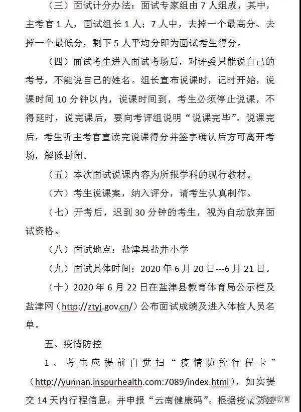 2020年昭通市鹽津縣教師專項(xiàng)招聘面試須知