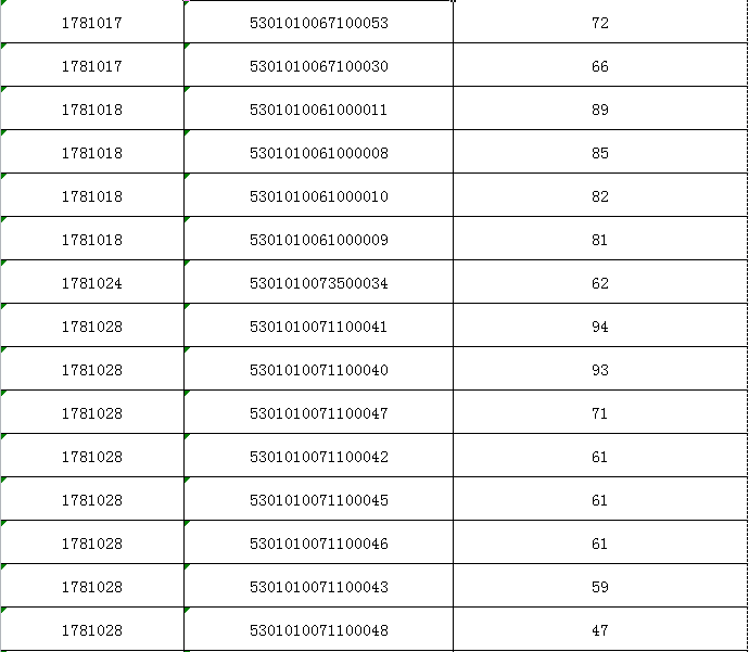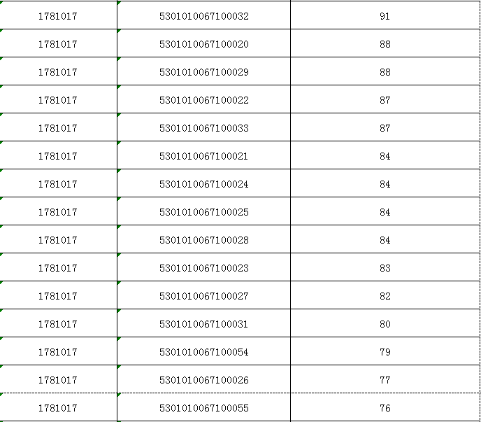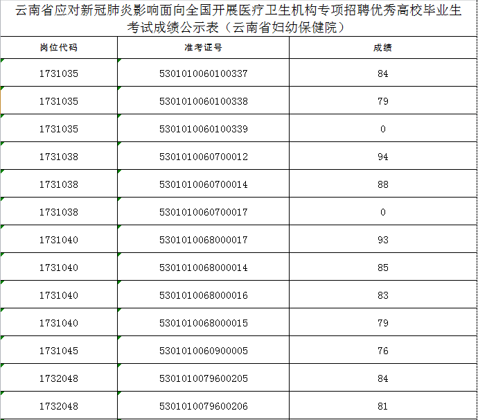 招聘優(yōu)秀高校畢業(yè)生考試成績公示表(云南省婦幼保健院)
