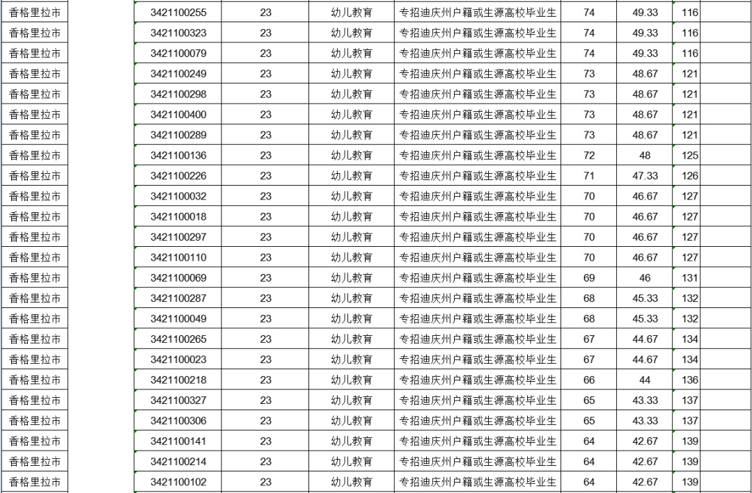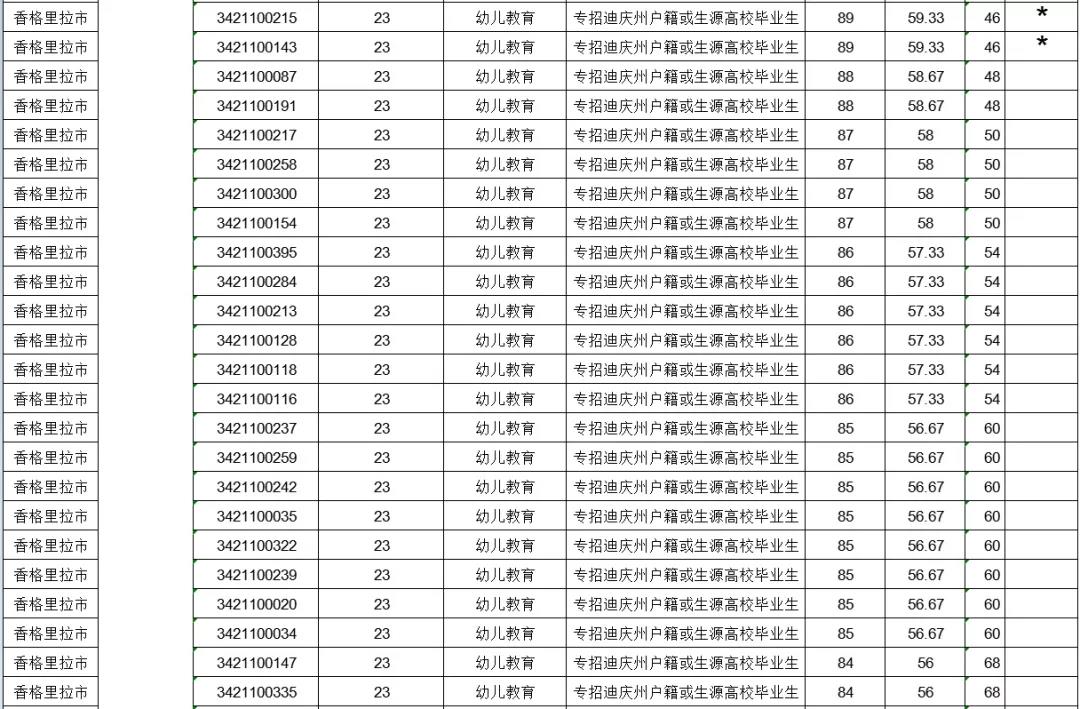 2020年香格里拉市專項招聘特殊教育、鄉(xiāng)鎮(zhèn)中心幼兒園教師進入資格復審人員公告