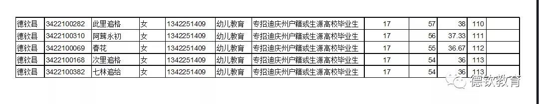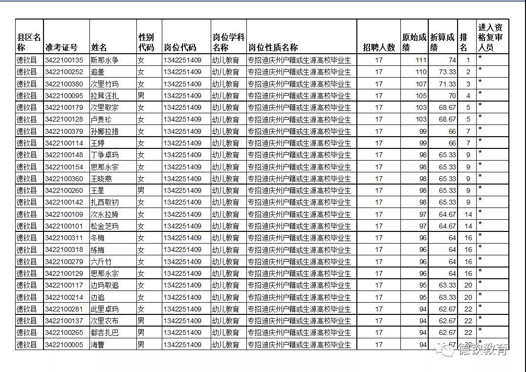 附件:2020年德欽縣專項(xiàng)招聘鄉(xiāng)鎮(zhèn)中心幼兒園教師通過筆試進(jìn)入資格復(fù)審人員名單
