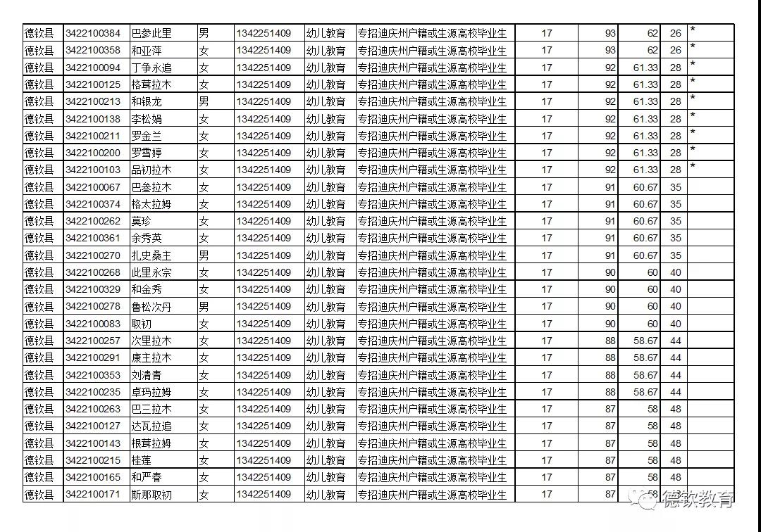 我縣將于2020年6月18日(上午9:00—12:00,下午2:30—5:30)在德欽縣教育體育局一樓會(huì)議室進(jìn)行2020年德欽縣專項(xiàng)招聘鄉(xiāng)鎮(zhèn)中心幼兒園教師崗位資格復(fù)審。報(bào)考免筆試崗位的考生請(qǐng)按公告按時(shí)參加資格復(fù)審?,F(xiàn)將通過筆試進(jìn)入資格復(fù)審人員名單公告如下,“*”為進(jìn)入資格復(fù)審人員,請(qǐng)按時(shí)參加。