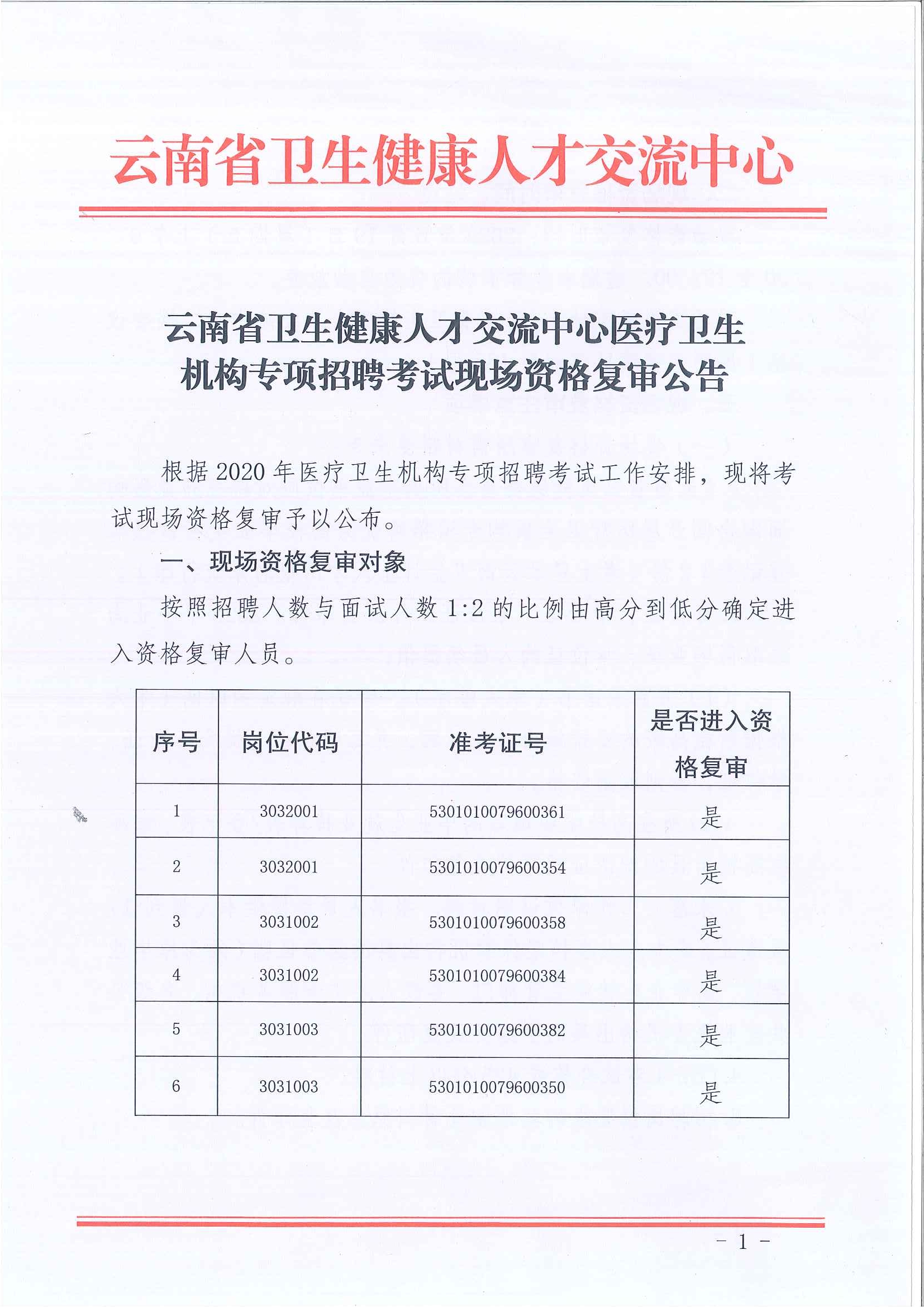 云南省衛(wèi)生健康人才交流中心醫(yī)療衛(wèi)生機構專項招聘現(xiàn)場資格復審公告