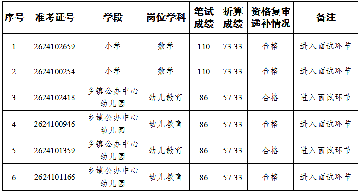 根據(jù)《云南省應對新冠肺炎疫情影響大幅增加名額面向全國開展基礎教育學校專項招聘優(yōu)秀高校畢業(yè)生公告》等有關規(guī)定,進入麻栗坡縣2020年專項招聘基礎教育學校教師面試前資格復審環(huán)節(jié)102人,經(jīng)復審,符合進入面試環(huán)節(jié)95人。經(jīng)遞補及資格復審,符合進入面試環(huán)節(jié)6人。符合進入面試環(huán)節(jié)共101人,現(xiàn)將面試遞補人員名單公告如下: