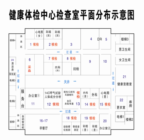附圖-2:健康體檢中心檢查室平面分布示意圖