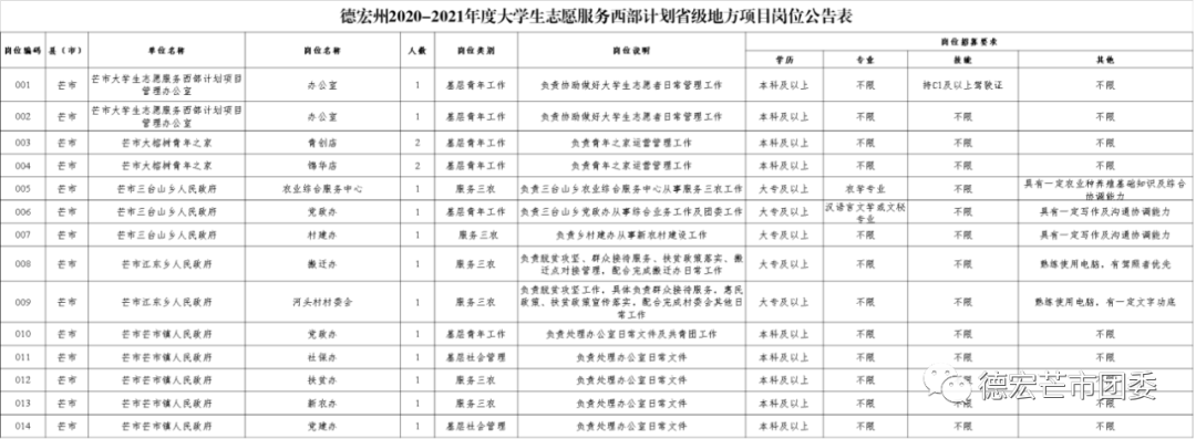 附件1.德宏州2020-2021年度大學(xué)生志愿服務(wù)西部計劃地方項目崗位公告表