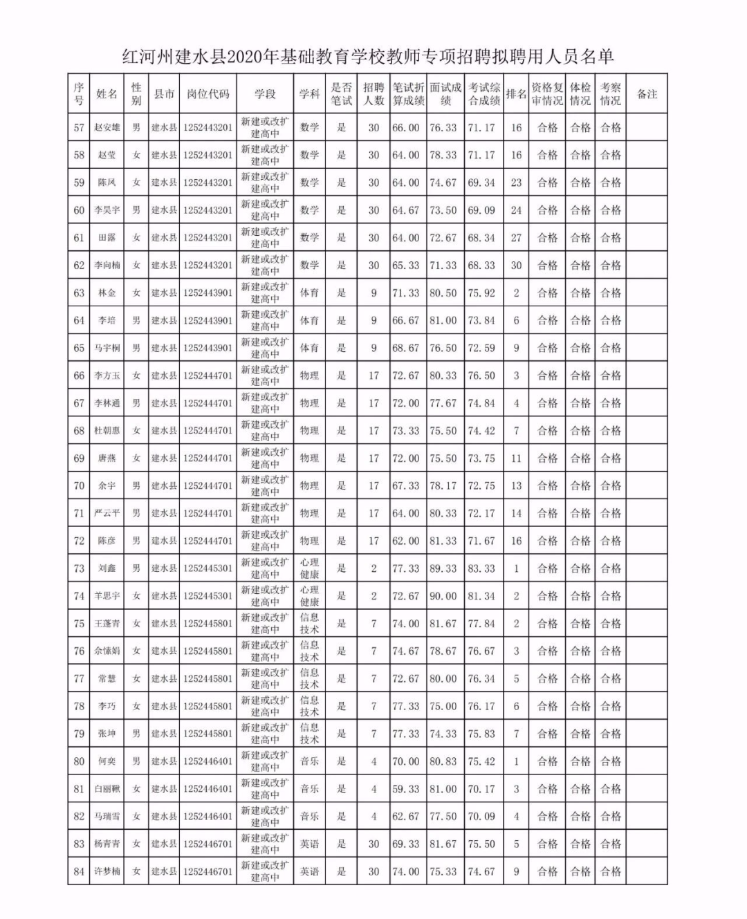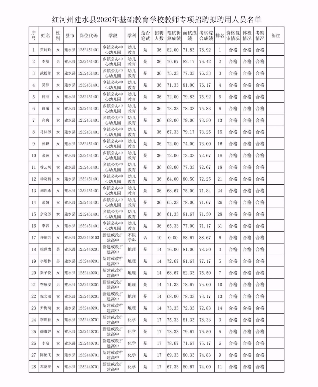 建水縣2020年專項招聘基礎教育學校教師擬聘用人員公示(第一批)