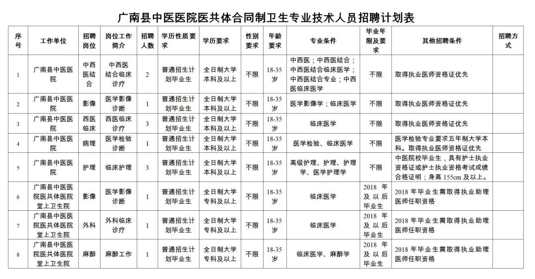 附件:廣南縣中醫(yī)醫(yī)院醫(yī)共體合同制衛(wèi)生專業(yè)技術(shù)人員招聘計(jì)劃表。