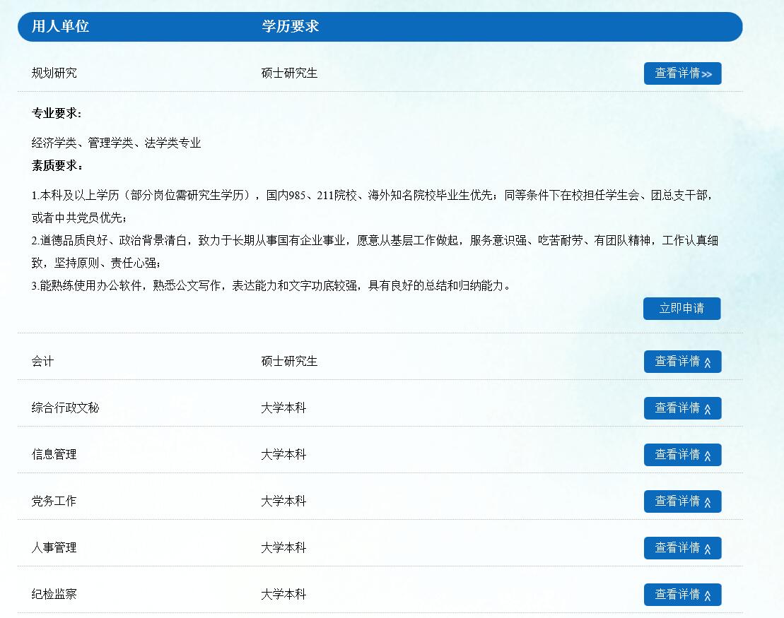 5.具有國民教育序列大學(xué)本科及以上學(xué)歷,或經(jīng)國家教育部認(rèn)證的同等國(境)外學(xué)歷;本部個別招聘崗位要求碩士研究生及以上學(xué)歷。