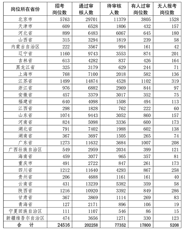 1.截至7月7日17時各省份崗位報考情況統計表