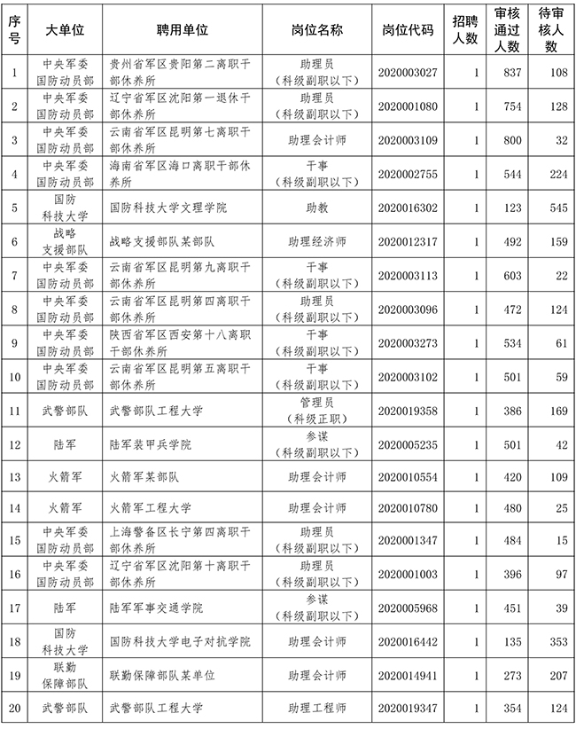 2020年全軍面向社會公開招考文職人員網上報名有關情況