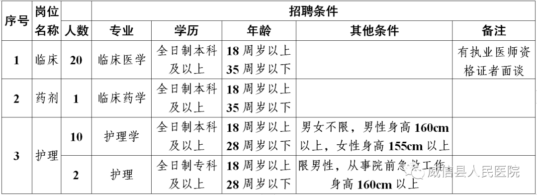 威信縣人民醫(yī)院2020年面向社會(huì)公開招聘編制外人員公告