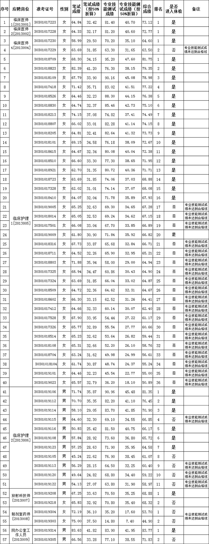 玉溪市中醫(yī)醫(yī)院2020年公開招聘編外人員綜合成績 根據(jù)《玉溪市2020年市級機(jī)關(guān)事業(yè)單位公開招聘編外人員公告》,經(jīng)報名、筆試、資格復(fù)審、專業(yè)技能測試等程序,現(xiàn)將綜合成績公示如下: