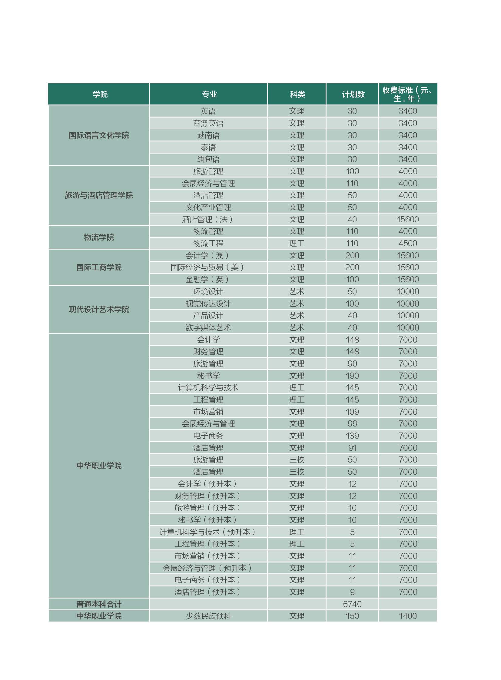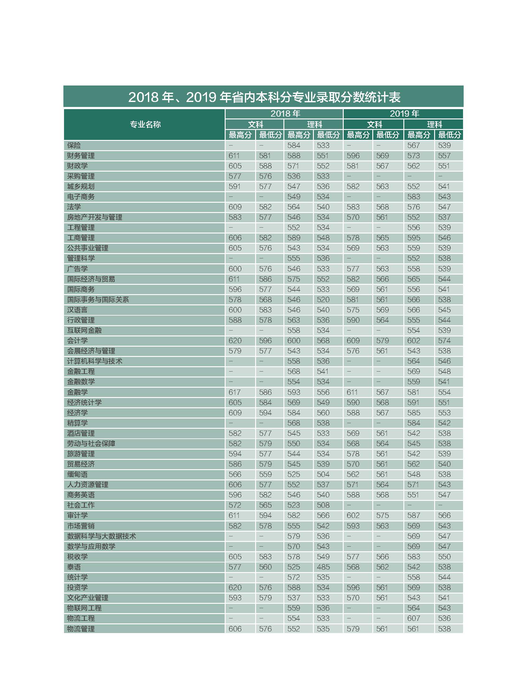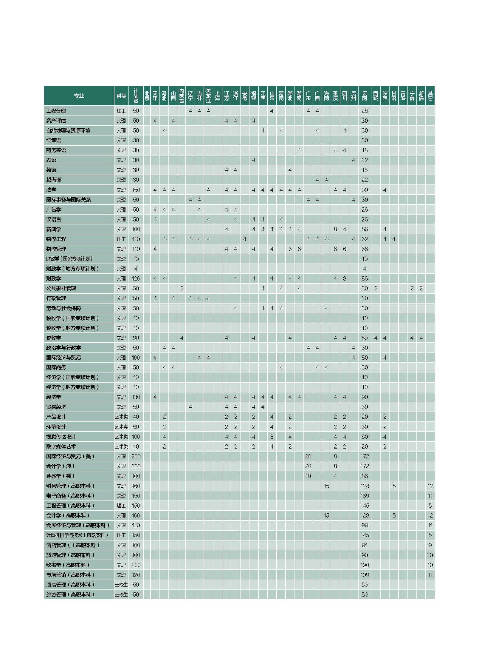 云南財經大學2020年本科分省招生計劃表