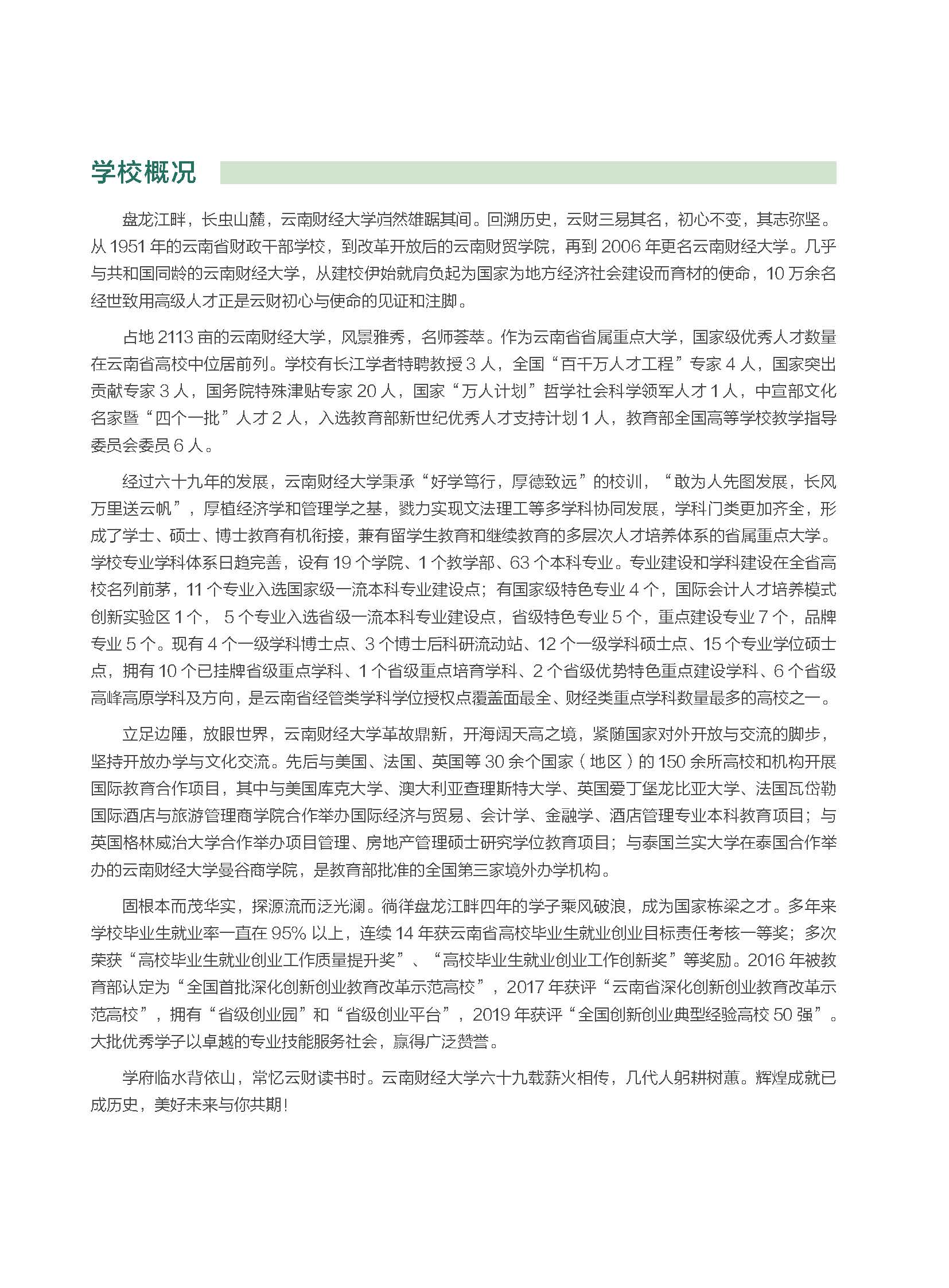 2020年云南財經大學招生簡章