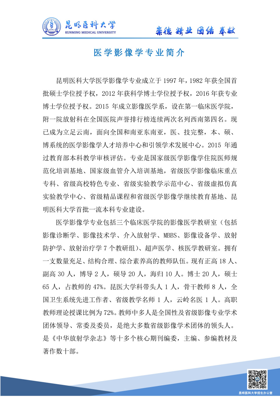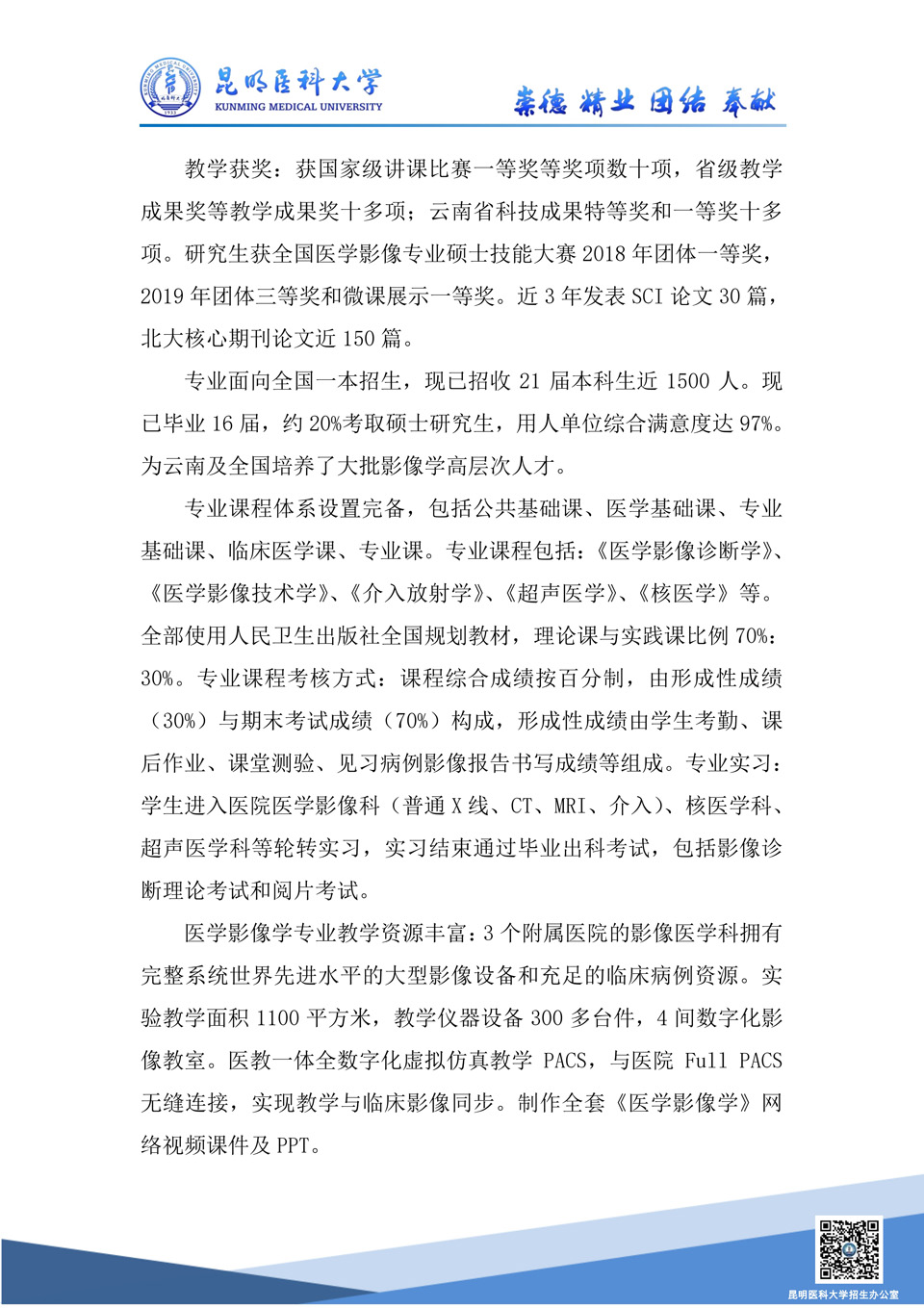 昆明醫(yī)科大學(xué)2020年招生專業(yè)介紹--醫(yī)學(xué)影像學(xué)